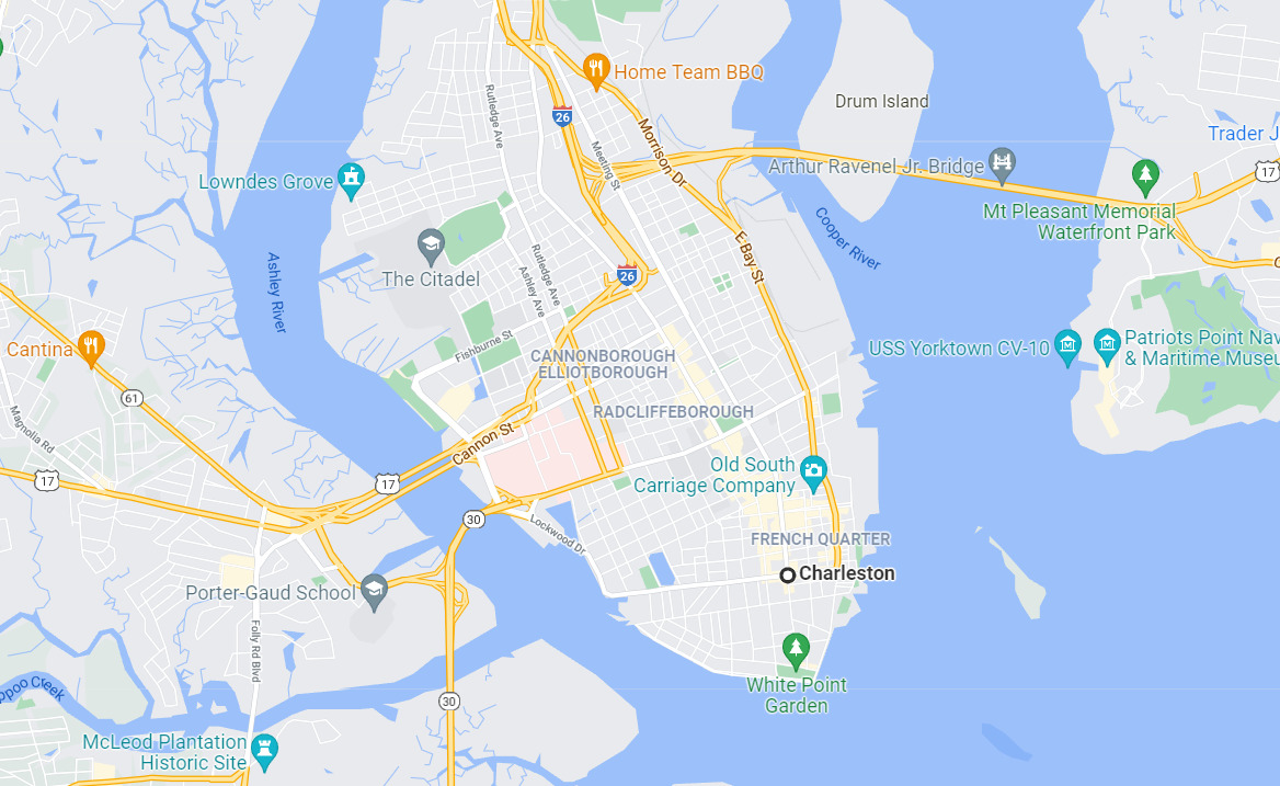 Charleston, the South Carolina port city founded in 1670, is defined by its cobblestone streets, horse-drawn carriages, and pastel antebellum houses, particularly in the elegant French Quarter and Battery districts. The Battery promenade and Waterfront Park both overlook Charleston Harbor, while Fort Sumter, a federal stronghold where the first shots of the Civil War rang out, lies across the water.